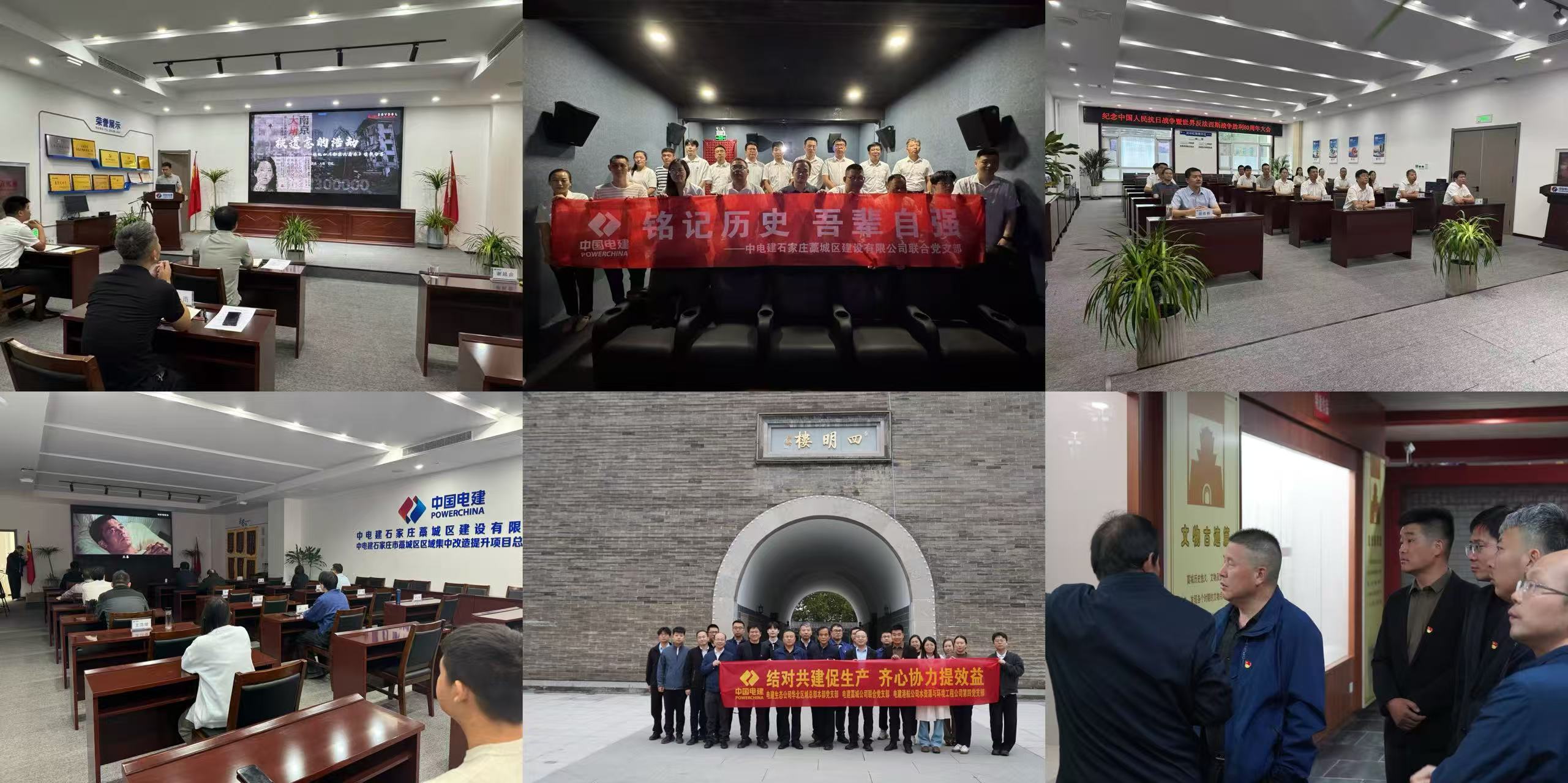 除读书分享会与主题观影活动外,党支部还以“赓续红色血脉,汲取奋进力量”为核心,组织多场实地研学活动,让员工在行走中感悟初心使命。8月中旬,全体党员干部走进梅花镇惨案馆,面对一帧帧悲惨场景的复原,了解藁城人民反法西斯暴行的觉醒与反抗,将所思所感转化为更加强大的工作动力;10月17日,华北区域总部本部党支部、藁城公司联合党支部、电建港航公司水资源与环境工程公司第四党支部联合开展主题党日活动,共同探访具有重要历史意义的四明楼,聆听藁城本地抗日故事,进一步强化员工作为地方建设者的历史认同感;12月19日,在华北革命战争纪念馆《华北烽火》展厅内,员工们通过“地道战”“地雷战”“麻雀战”等场景与实物,直观感受晋察冀抗日根据地军民的智慧与勇气,进一步读懂抗战精神内涵。