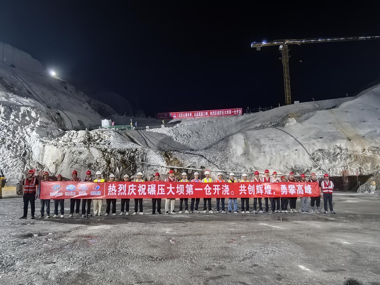 中秋、国庆两节期间,项目团队积极发扬电建人敢于挑战、连续作战的奉献精神,抢抓施工黄金期,在首仓浇筑期实行“三班倒”24 小时作业,每班设仓面总指挥长进行统筹,由质检人员全程监督记录,确保首仓碾压混凝土顺利浇筑。面对施工中的各类挑战,项目团队坚持“问题导向”,建立“周战报、月复盘”的工作机制,每周召开大坝浇筑专题推进会,及时梳理堵点、难点,动态优化施工计划,并每月开展质量安全复盘,将责任层层压实到班组和个人,成功克服了技术、征地、汛期影响等困难;同时积极引入智能建造技术,全力保障工程高质量推进。每一方混凝土,都凝聚着建设者的智慧与汗水。